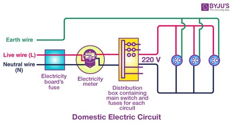 Explain Domestic Circuit With Diagram. Electricity is distributed through the domestic electric circuits wired by the electricians. One is a live wire (positve wire) with red insulation and the other is a neutral.